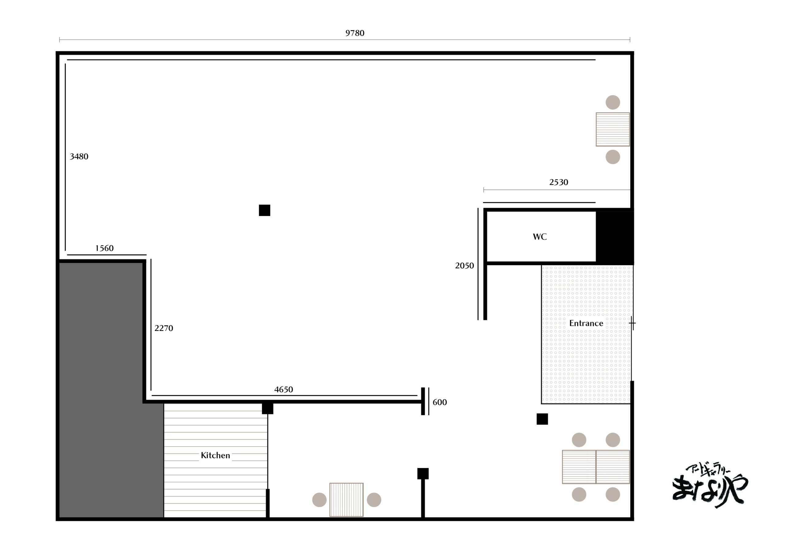 備品 :受付用テーブル《120㎝×60㎝》×1台、イス《長椅子含む》×4点、スタンドライト×1点