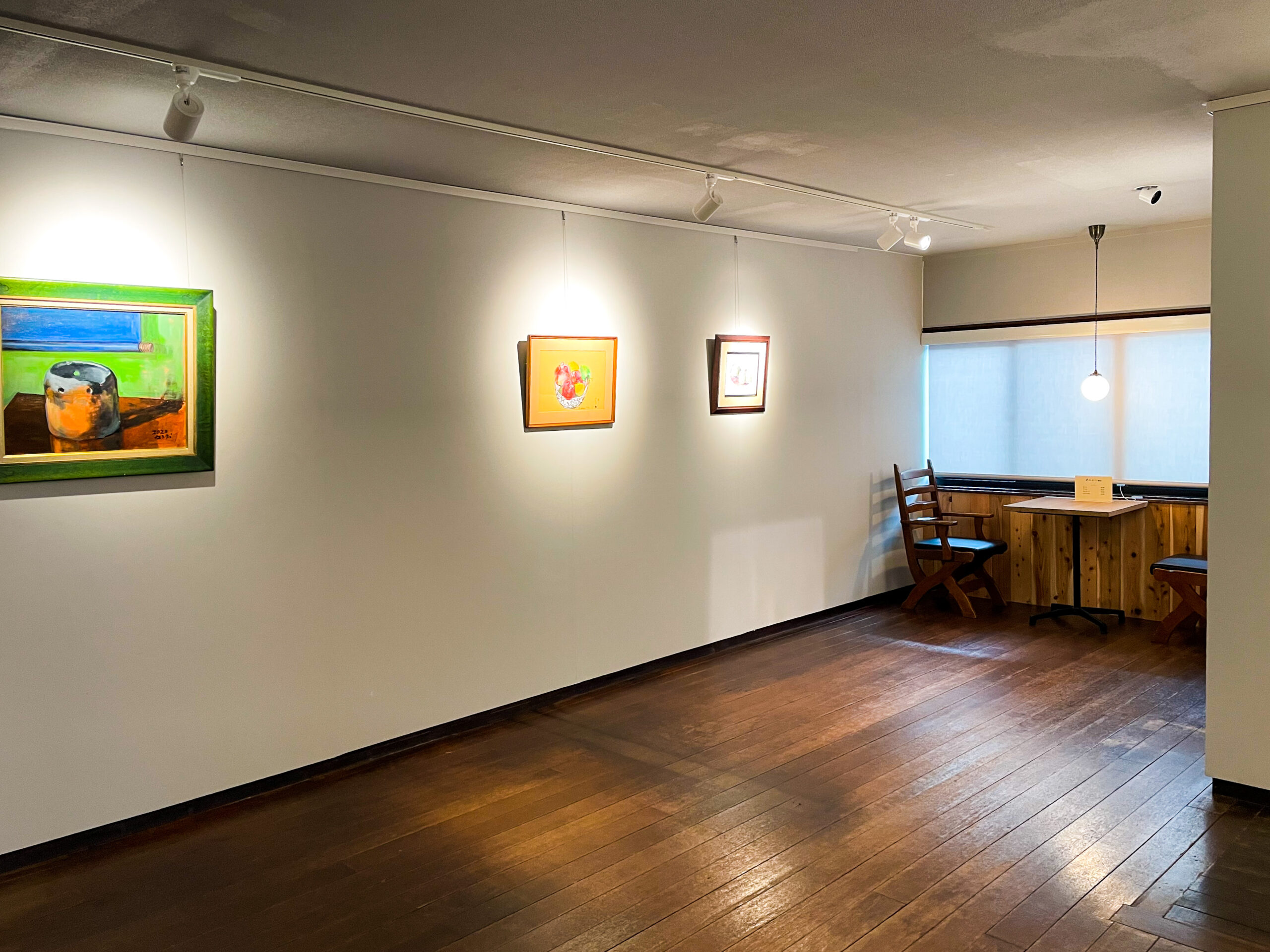 カフェコーナー(ドリンクのみ提供)にも若干の展示スペースがあります。*平面図参照