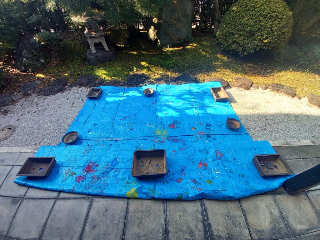 両膝ついて、雑草を一本づつ引っこ抜いて、完璧な白砂を仕上げたところを、野良猫がトイレにしてしまった。再び猫との戦いが始まった。一ヶ月になる。情けないことに、ブルーシートをかぶせてにっくき猫に嫌がらせをするぐらいのことしか思いつかない。妙手はないものか