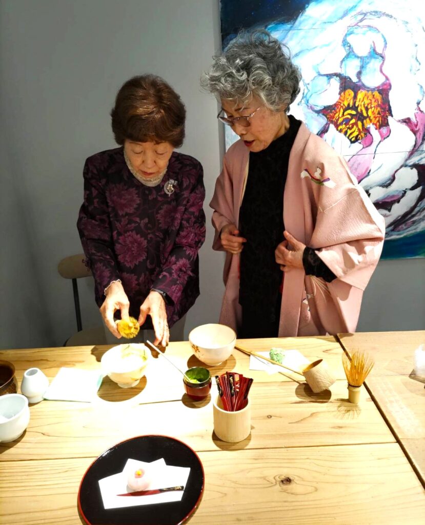 ご持参いただいた掛け軸や手作りのオブジェなどで、今年は華やかな飾り付けのなかで、お点前をいただくことができました。