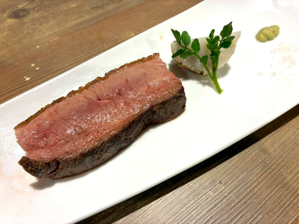 ⑤鴨ロースのグリル 里芋のロースト添え フランス産岩塩とわさび
