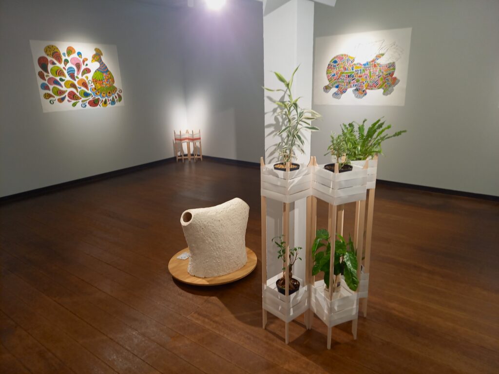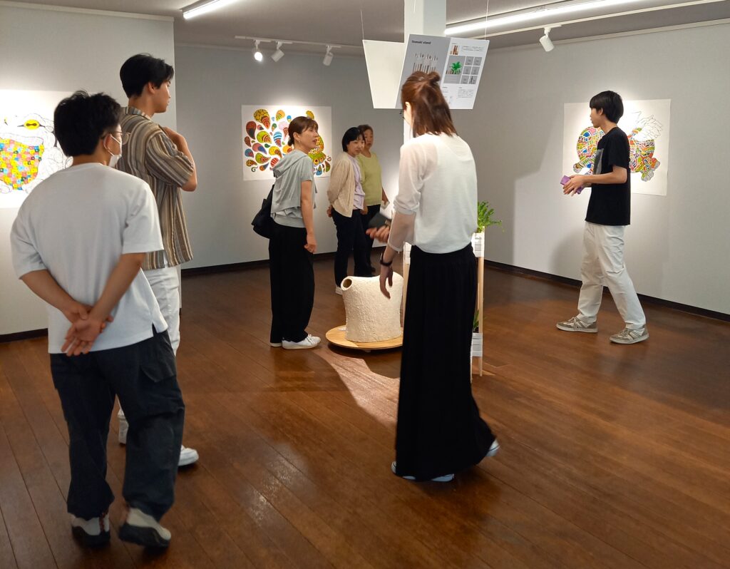 私は主にプロダクトデザインを専攻しています。今回の展示では籾殻や木材といった様々な素材で作った作品を出展しています。様々な要素で構成された空間に浸って、なにかを感じで頂ければ幸いです。