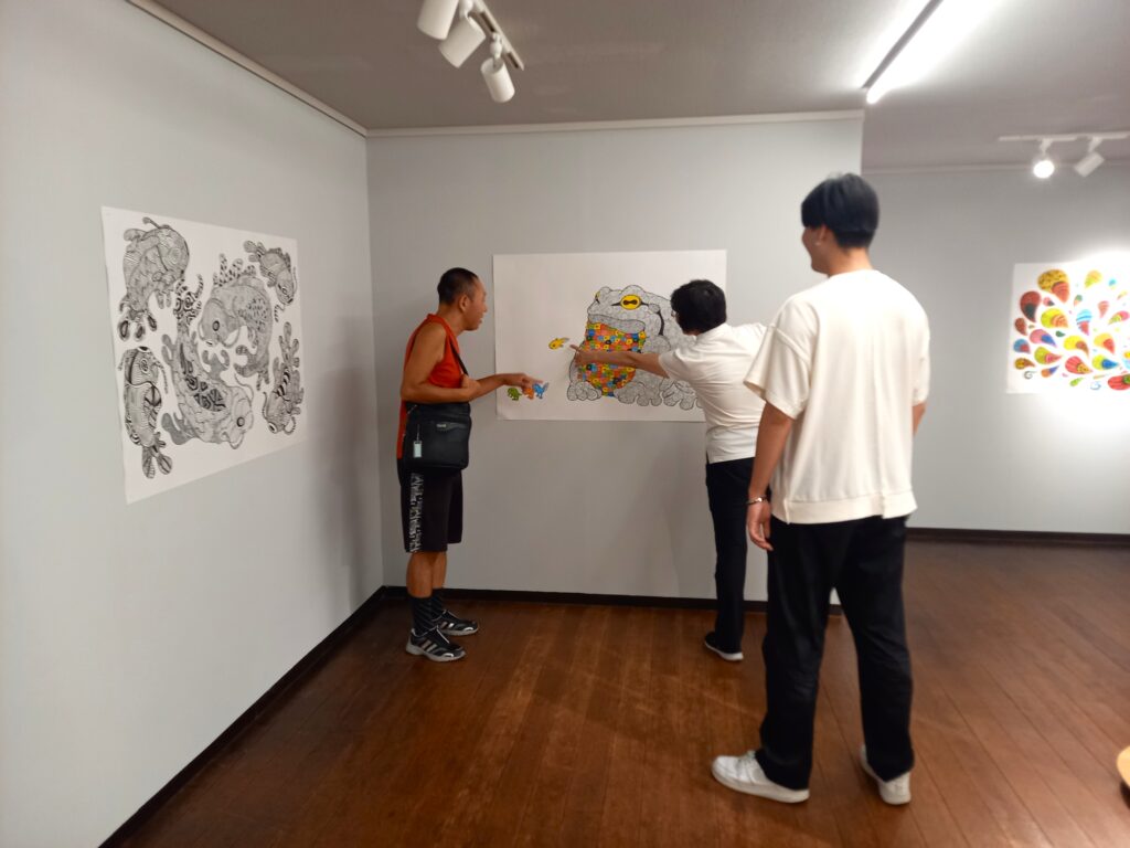 私は主にデザインについて日々学んでおります。私は主にペンを使用した作品が多いです。そして私は線に注目しており、線の太さや筆圧などに気を遣いながら繊細な作品を作っています。今回の展示は初の他校とのグループ展ではありますが私達の作品が生み出す独自の空間を楽しんでください。