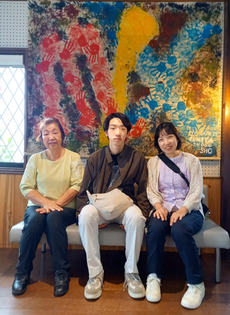 完成した特大ポスターの前で記念の家族写真を一枚 9月21日