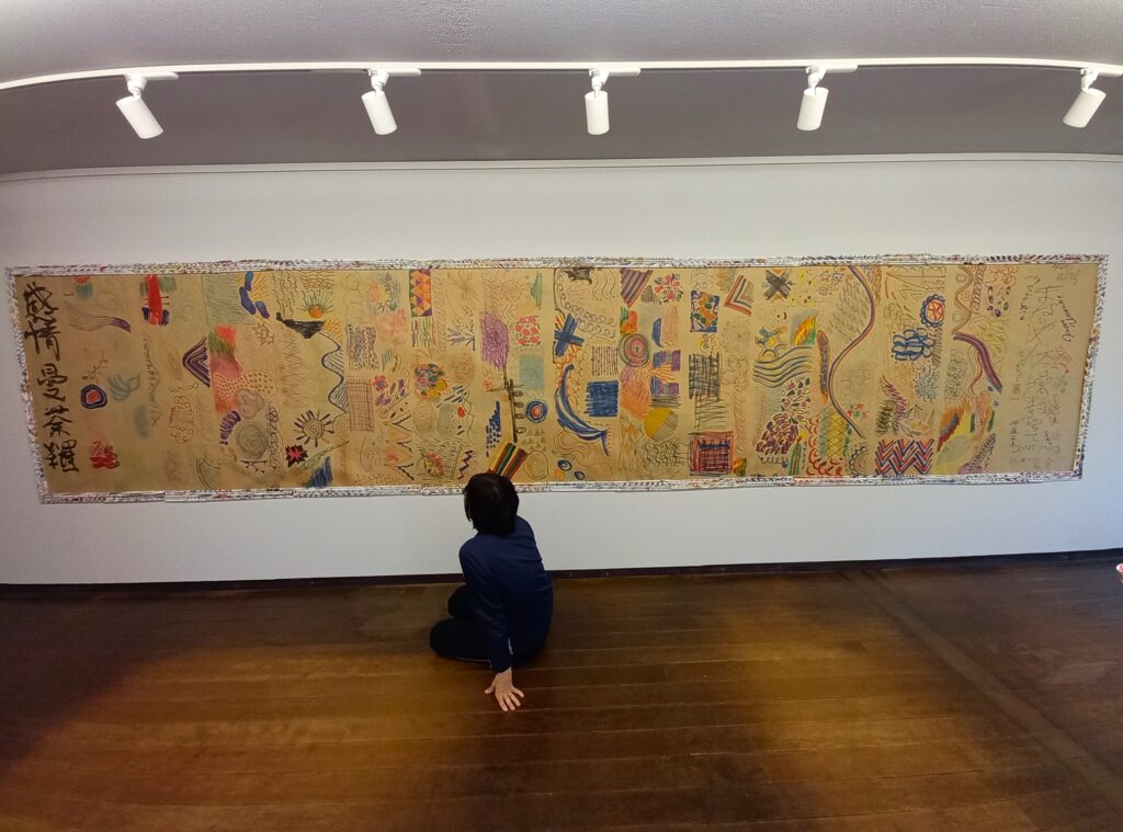週に一回、三カ月にわたって創作した『感情曼荼羅』がメイン展示です。作品は5メートル近い大作で、以下のルールで描かれました。